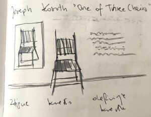 (Moje notatki z wykładu z pomyłką. W rzeczywistości praca nazywa się „One and Three Chairs”)