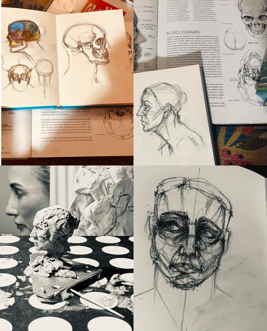 Przez ostatnie miesiące miałam okazję studiować w ten sposób, aż 4 osoby. Nad ostatnim portretem nadal będziemy pracować i odlewać w gipsie.
